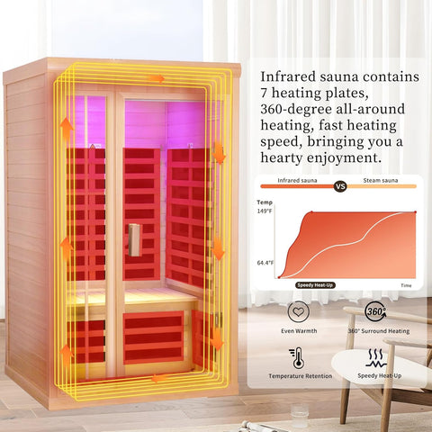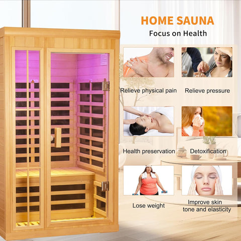 1 to 2 Person Infrared Saunas for Home, Dry Sauna for Home, Low Emf Infrared Sauna 1350W Indoor Saunas