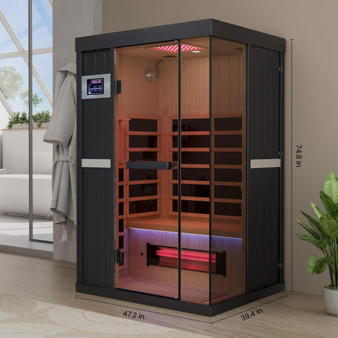 2-Person Full Spectrum Infrared Sauna, 1990W 120V with 12"*12" Red Light Therapy, 2 Speakers