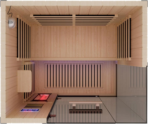 Elevate your space with this 2-person full spectrum infrared sauna, 1990w 120v with 12"*12" red light therapy, 2 speakers. Designed with both style and functionality in mind, this piece makes a perfect addition to any home.