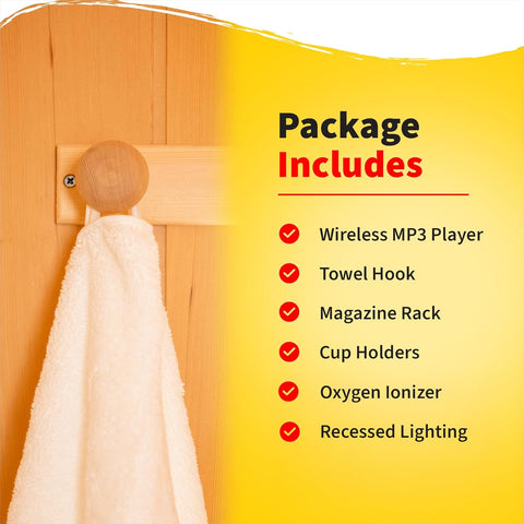 HEATWAVE Coronado 2 Person Hemlock Low EMF Infrared Wood Sauna for Home & Indoor Relaxation