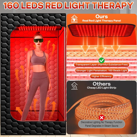 Infrared Sauna Box, 160 LEDs Red Light Sauna Steam Room, Portable Sauna Tent with 3L/1200W Steamer, 15 Heating Levels