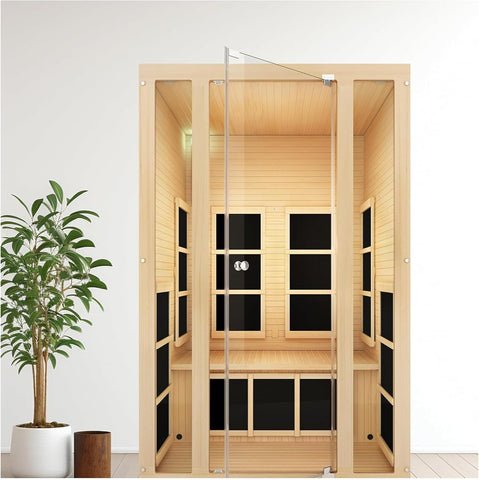 JNH Lifestyles Joyous 2-Person Low EMF FAR Infrared Sauna with Chromotherapy Light for Home Indoor Spa Use