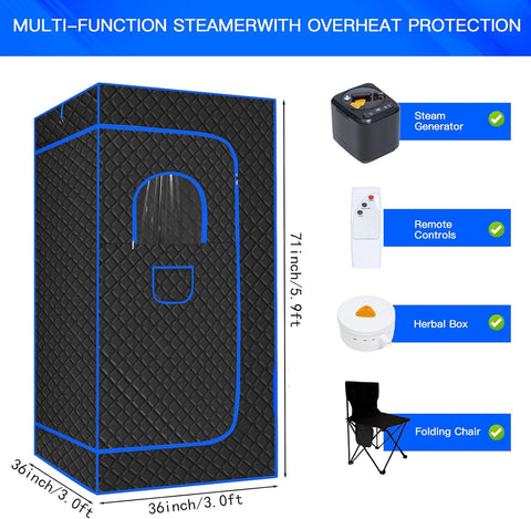 Portable Steam Sauna for Home, Full Body Sauna Box, Personal Sauna Steam Sauna Tent at Home Spa with 3L 1200W Steamer