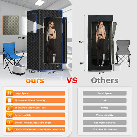 Elevate your space with this slendor portable sauna, steam sauna for home, sauna box with 3l steamer, sauna tent with folding chair. Designed with both style and functionality in mind, this piece makes a perfect addition to any home.