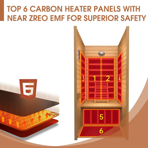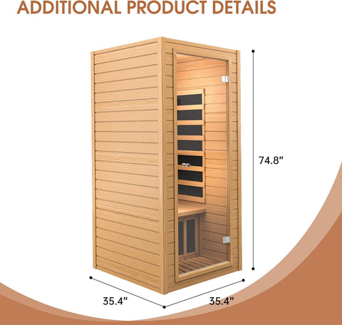Springspa Far Infrared Sauna, Low EMF 1 Person Sauna, Indoor Canadian Hemlock Wood Home Dry Saunas Room with 1400W