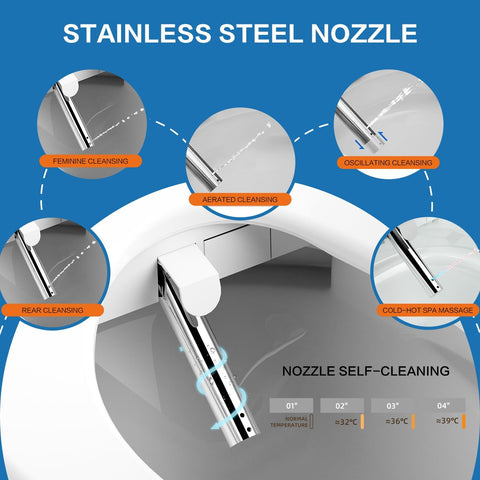 Elongated Electric Bidet Toilet Seat with Endless Warm Water, Heated Seat, Dual Front and Rear Wash, Warm Air Dryer, LED Night Light