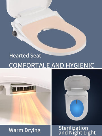 - Hygienic Cleaning & Comfort: Self-cleaning bidet nozzle provides gentle, thorough cleansing. Warm air dryer (room temperature to 102℉) and sterilization ensure complete hygiene and comfort.