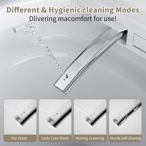 - Cleaner Routine from Filter to Nozzle: Built-in water filter reduces sediment for cleaner water. Self-rinsing nozzle keeps the system hygienic after each use. Combined with an easy-to-sit seat design, this toilet promotes cleaner daily routines for families or anyone prioritizing hygiene.