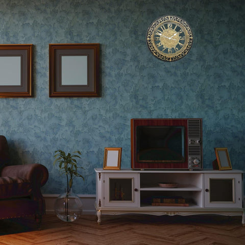 ANDSTAR 20 Inch Roman Numeral Wall Clock - Silent Non-Ticking Metal Frame with Glass Face, Battery Operated Vintage Decor for Living Room, Bedroom & Office (Antique Gold)