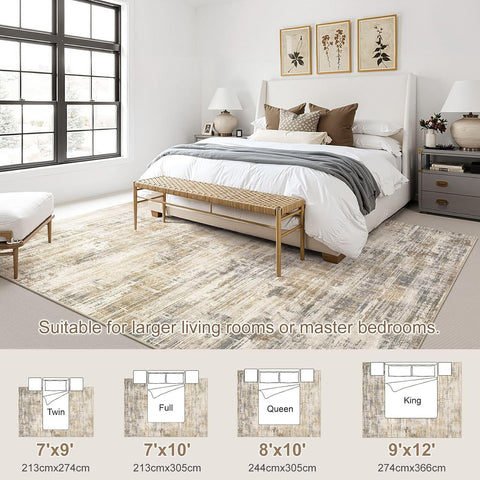 Area Rug for Living Room: 8x10 Washable Neutral Abstract Modern Soft Rugs Non Slip Indoor Floor Stain Resistant Large