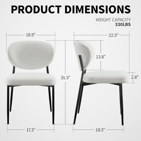 Upholstered Dining Chairs Set of 2 Modern Chenille Dining Room Chairs Wide Cushion with 58D Memory Foam Ergonomic