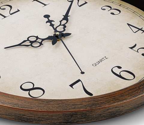 Bernhard Products Vintage Brown Wall Clock Silent Non Ticking 16 Inch Extra Large Quality Quartz Battery Operated