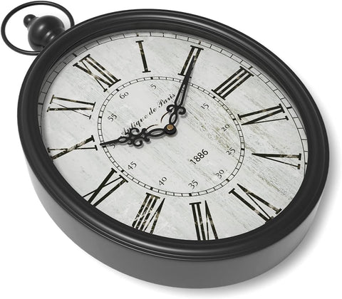Menterry Oval Retro Wall Clock, Rustic Vintage Style, Black Antique Design