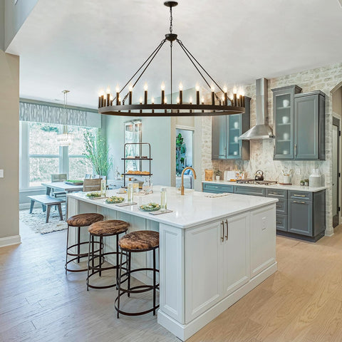 The black wagon wheel chandelier was made by a skilled craftsman. The 28 light design provides 360¡light coverage creating a vintage industrial style and a nostalgic style. This iron chandelier is very beautiful and large. If you use a bright bulb, it will illuminate a large space,creates a cozy home atmosphere.