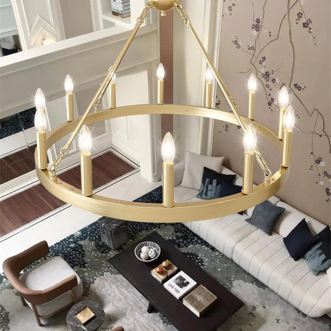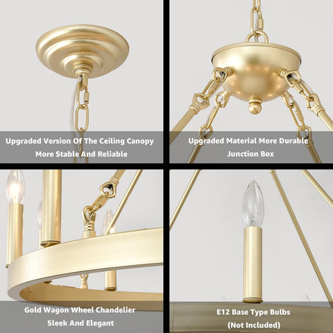 Gold Wagon Wheel Chandelier Farmhouse 32-Inch, 12-Light Modern Gold Chandelier for Dining Room, Round Iron Industrial Chandeliers Light Fixture for Living Room, Foyer, Entryway, E12 A105-B0DM1YQ7PG