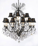 This beautiful Chandelier is trimmed with Empress Crystal(TM) A Great European Tradition. Nothing is quite as elegant as the fine crystal chandeliers that gave sparkle to brilliant evenings at palaces and manor houses across Europe. This beautifully unique version from the Versailles Collection has 100% Crystal that capture and brilliantly reflect the light of the candle bulbs. The frame is all wrought iron, adding the finishing touch to a wonderful fixture. The timeless elegance of this chandelier is sure to lend a special atmosphere anywhere its placed! Assembly Required. **SHADES INCLUDED** H50" W36" 15 LIGHTS, TWO TIERS