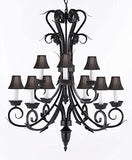Wrought Iron Crystal Chandelier Lighting H 19" W 20" - With Black Shades - A83-Blackshades/3530/6