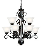Wrought Iron Crystal Chandelier Lighting H 19" W 20" - With Black Shades - A83-Blackshades/White/3530/6