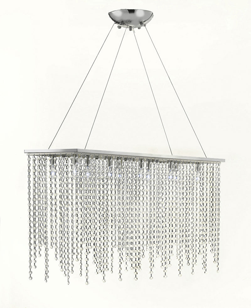 10 LIGHT CRYSTAL LIGHTING PENDANT Chrome finish. Clear crystal. Collection: G902 Modern Collection SIZE: Length 39.5" Width 10" Height 20" Comes with adjustable cable (maximum height 70"�, minimum height 21"�)