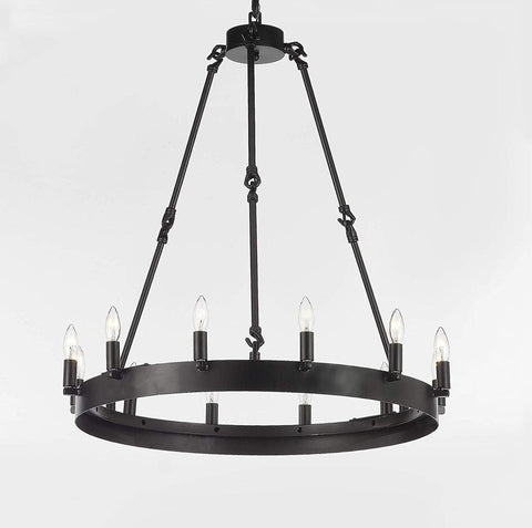 Wrought Iron Vintage Barn Metal Castile One Tier Chandelier Chandeliers Industrial Loft Rustic Lighting W 26" H 27" Size: W 26" H 27" 12 Lights