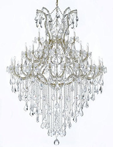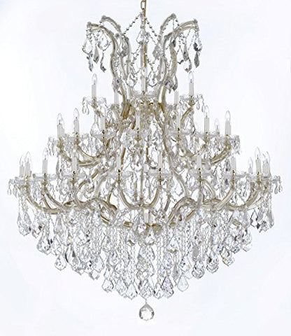 Maria Theresa 100% Crystal Chandelier. A great European Tradition. Nothing is quite as elegant as the fine crystal chandeliers that gave sparkle to brilliant evenings at palaces and manor houses across Europe. This two-tier version from the Maria Theresa collection is decorated with 100% crystal that capture and reflect the light of the candle bulbs, each resting in a scalloped bobache. The timeless elegance of these chandeliers is sure to lend a special atmosphere in every home. Please note this item requires assembly. This item comes with 18 inches of chain. SIZE: H.30" X W.28" 13 LIGHTS.