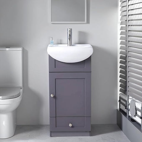 18-Inch Small Bathroom Vanity with Ceramic Sink – Modern Narrow Freestanding Cabinet with Soft-Close Door & Drawer, Grey