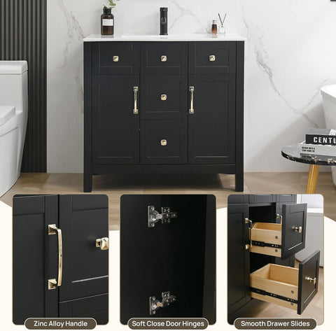 • Hassle-Free Assembly – Ships in two packages and includes the vanity, ceramic sink, faucet, and pop-up drain. Clear instructions make installation quick and easy.