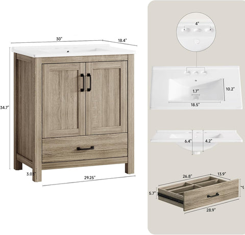 30'' Bathroom Vanity with Single Sink Combo, Freestanding Bathroom Vanities with Ceramic Sink & Door Shelf, Farmhouse Storage Cabinet with 2 Soft Closing Door & Drawer A133-B0FC2QQRFF