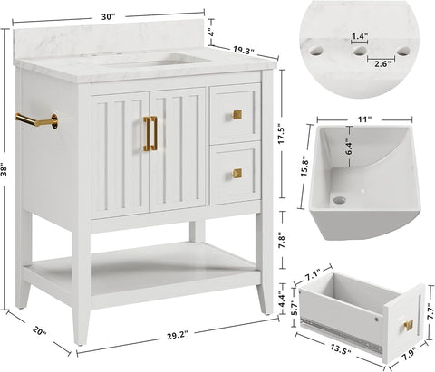 30" Bathroom Vanity with Sink, Bathroom Cabinet with 2 Drawers & Open Shelf for Guest Baths Master Suites or Rental Units, Industrial White A133-B0FJD7VNS5