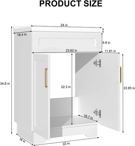 24/32-inch cabinet stores toiletries, towels, and cleaning supplies - making your bathroom instantly tidy. The modern bathroom vanity you deserve.