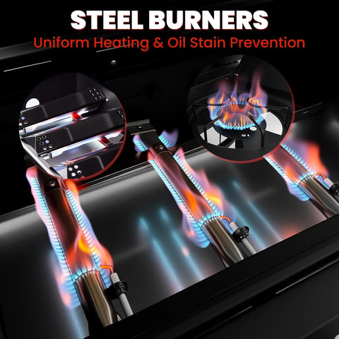 • Serious BTU Power, Smart Energy Use: 36,000 BTU total output (3 x 8,000 BTU vertical tube burners + 12,000 BTU circular side burner) for masterful heat zones. (BTU measures energy, not heat—efficiency meets power.)