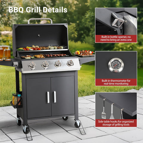 4-Burner Propane Gas Grill, 40,000 BTU Stainless Steel BBQ Grill for Backyard and Outdoor Cooking