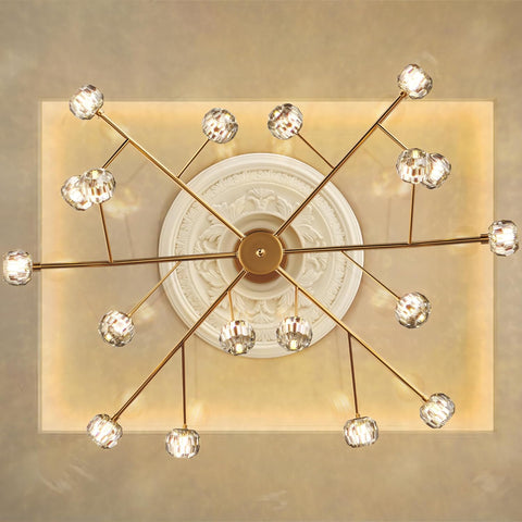 All 18 lights are made of K9 crystal and the surface is finely cut into irregular shapes, which makes the chandelier full of design and absolute stunning when light turns on.