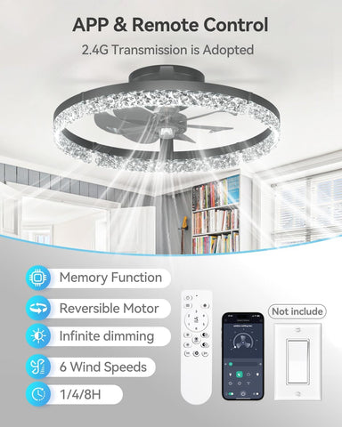 Through the remote control, you can turn the fan on/off, adjust wind speeds, as well as realize the function of 1/4/8 hours timer off. In addition, our fan has a memory function, if you turn off the fan through the wall switch, the next time you turn it on, the fan will still maintain the state before the last time it was turned off.