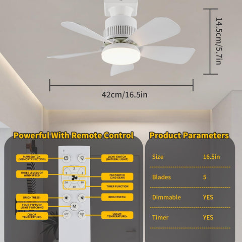 The light fan remembers your fan speed, brightness (10Ð100%), and color temperature (2800KÐ6000K), even after a power loss. To pair the remote, turn the switch off, hold any button, turn the switch on, and the fan will flash. It also supports a wall switch.