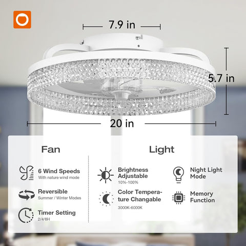 Bring more than just wind and light, but comfort! The addlon modern ceiling fan, designed with an exquisite crystal shade, provides enough airflow and light while bringing a cozy and elegant ambiance, making it the perfect decoration for your home. This small ceiling fan with light remote control has A energy efficiency rating, which can avoid 80% of electricity loss compared with traditional fans.