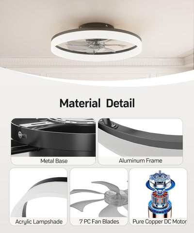 Smart Ceiling Fans with Light and Remote,20'' Low Profile Ceiling Fan with 6-Speed & Dimmable LED, Alexa/APP Home Voice Control, App, Reversible Airflow, App Timer, for Bedroom (Black) A101-B0F18MM3RG