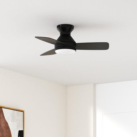 Ceiling Fans with Lights, 30 inch Low Profile Ceiling Fan with Light and Remote Control, Flush Mount, Reversible, 3CCT, Dimmable, Noiseless, Black Ceiling Fan for Bedroom, Indoor/Outdoor Use A102-B0C61K8BCF