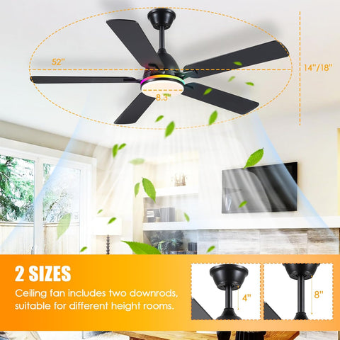 Ceiling Fans with Lights, 52 Inch Low Profile Ceiling Fan with Light and Remote Control,Reversible, RGB_3CCT, Dimmable, Quiet, Black Ceiling Fan for Bedroom Indoor/Outdoor Use A101-B0DTDB527S