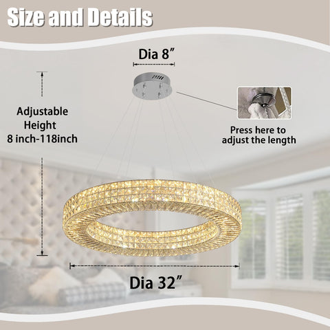 Dia 32" Ring Crystal Chandelier Modern Silver Ring Chandelier Adjustable Height Luxury Crystal Pendant Ceiling Light Fixture for Dining Living Room Bedroom A122-B0CJ57MN6J