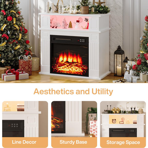 - Multifunctional Storage & Elegant Design: This electric fireplace mantel combines a built-in fireplace with a wooden storage cabinet for added style and functionality. The tabletop and open shelves provide convenient storage for books, CDs, plants, and décor, helping keep your space organized and visually appealing.