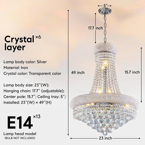13-Lights Empire Style Crystal Chandelier, 23 Inch Luxury K9 Crystal Chandeliers Pendant Lighting for Living Room, Dining Room, Foyer, Entryway, Hallway, chrome A108-B0D2NZZV18