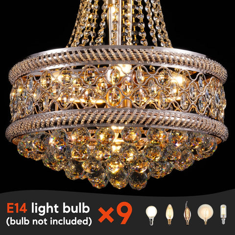 9 Light Luxury Crystal Chandeliers, D19 Inch Empire Gold Chandelier Hanging Light with Raindrop K9 Crystal for Living Room, Dining Room, Foyer, Entryway, Staircase A108-B0D78X2NF7