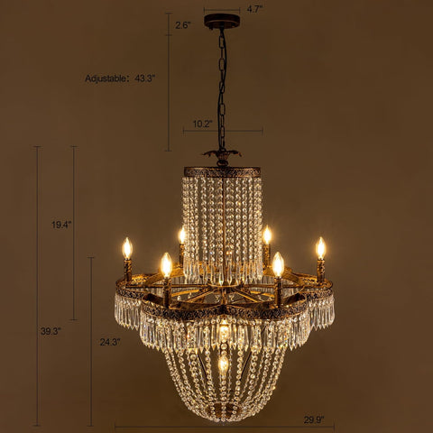 French Empire Crystal Chandelier, 30" Crystal Chandeliers for for Dining Room, Rustic Farmhouse Chandelier for Living Room, Antique Bronze Pendant Light Fixture for Bedroom, Foyer, Entryway A108-B0F6CRNM4B