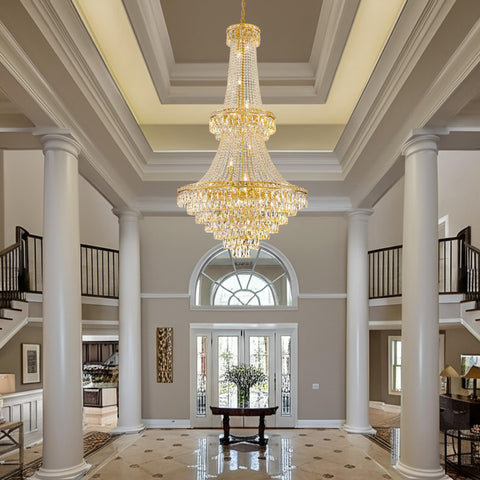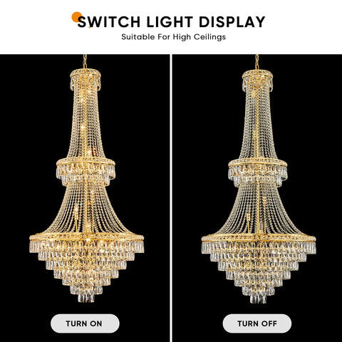 - Suitable for Any Space: Simple design is suitable for various rooms and decoration ceiling styles. This large gold crystal chandelier is perfect for porches, foyer, staircase, hallway, entryway, lobby, auditorium, banquet hall. Crystal chandeliers for high ceilings is sure to catch the eye of anyone who enters the space.