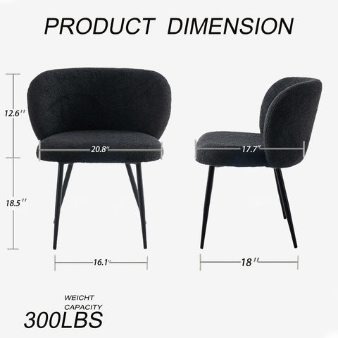 Dining Chairs Set of 2, Upholstered Fabric Dining Room Chairs with Metal Legs, Farmhouse Kitchen Chairs or Modern Accent Chairs for Home, Black