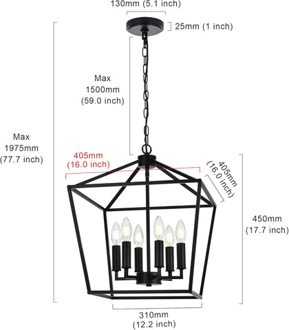 Stunning Design: Crafted from metal, this farmhouse lantern chandelier showcases an open, geometric frame in a matte black finish with 6 candlestick-shaped bulb bases. It provides the perfect amount of lighting without feeling obnoxiously bright. This simple, yet statement fixture adds a touch of style and interest to any room.