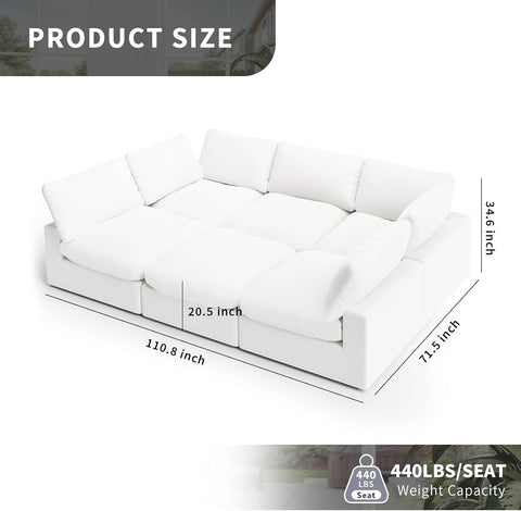 Cloud Modular Sectional Sofa - Oversized Down Feather Filled, Comfy Upholstered Deep Seat Couch for Living Room, Convertible Sleeper Sofa Bed with Washable & Replaceable Covers A124-B0F2FJG5LV