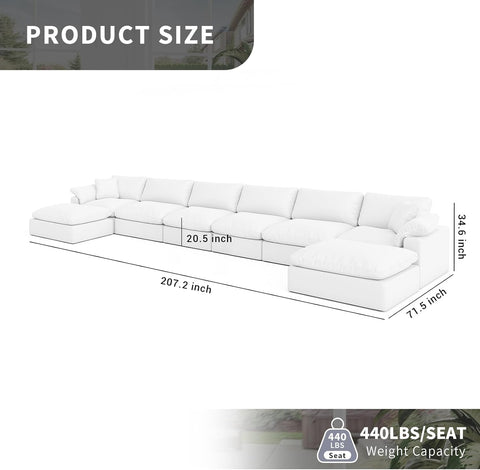 Cloud Modular Sectional Sofa, Oversized Down Feather Filled Sectional Sofa Comfy Upholstered Deep Seat Couches for Living Room, Convertible Spacious Sleeper Sofa Bed, Sofa Covers Washable&Replaceable A124-B0DXDSGJ5S