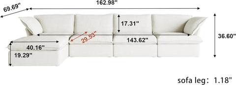 Overall Size: 162.98"L x 69.9"W x 36.6"H. Sofa type: sectional couch sofa; modular sectional; modern sofa; velvet sofa;sofa sectionals for living room; living room couch; cloud couch dupes; comfy couch;modern couch.This cloud sofa can add more comfort to your living room.